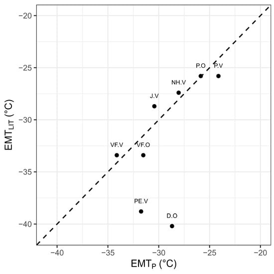 Laboratory-based assessments of plant cold tolerance are conservative by nature, e.g., predicted LT