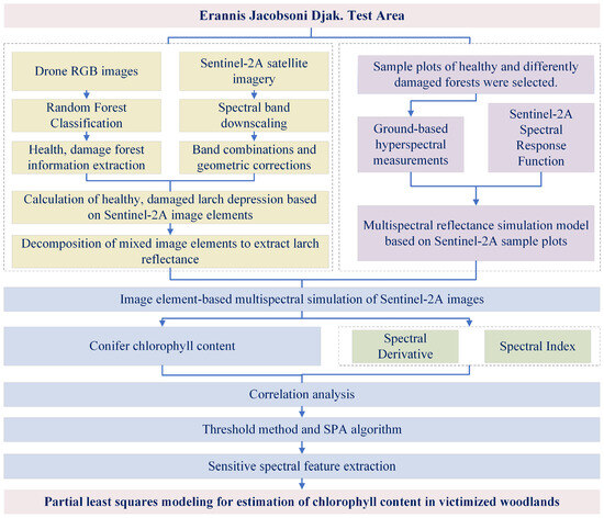 - Downscaling Sentinel-2A image data and decomposing mixed pixels in multispectral remote sensing images by simulating multispectral reflectance, and enhancing the expression of forest canopy information with Sentinel image pixels;