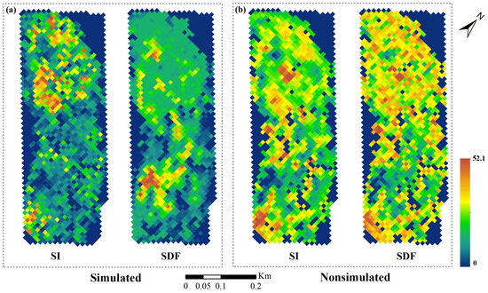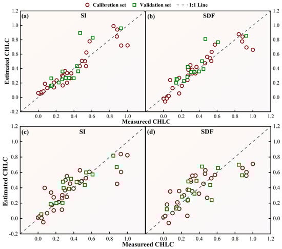 - The estimation model based on simulated data yielded significantly higher accuracy than the model based on nonsimulated data, with better CHLC estimates. Notably, the , , , , and MPI of the SDF-PLSR-based model for pest CHLC estimation were 0.8159, 0.1143, 0.1080, 0.1153, and 0.8636, respectively, which was an improvement in the performance over the SDF-PLSR model on the basis of nonsimulated remote sensing data of at least 0.0404 in each case.