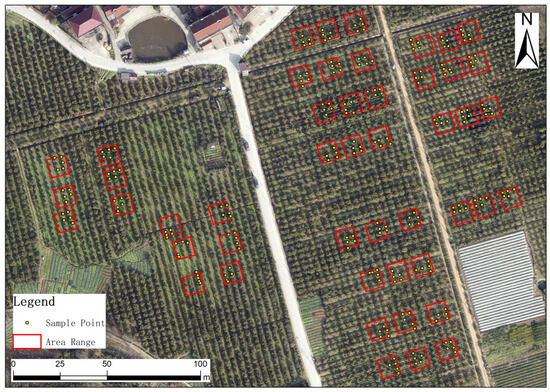 The study area is located at the Camellia oleifera plantation base of Anhui Dechang Seedling, in Zhan Chong Village, Hepeng Town, Shucheng County, Lu’an City, Anhui Province. The center coordinates are 116°46′56.377″ E, 31°11′25.040″ N (Figure 1). Hepeng Town has a typical subtropical monsoon climate characterized by distinct seasons, abundant rainfall, and sufficient sunlight. The annual precipitation ranges from 1000 to 1700 mm, the frost-free period averages 205 days, and the average annual temperature is 15 °C. The soil in the study area is classified as yellow–brown soil derived from yellow rock gravel, with a depth of 0–20 cm. The average total potassium content in the soil is 17.83 g/kg, and the pH value is around 5.16. The research area is located at the northern edge of the Camellia oleifera growing region in China and serves as a national germplasm resource conservation area for living Camellia oleifera plants. It is also a designated breeding base for high-quality Camellia oleifera seedlings in Anhui Province, with seedlings being sold to various regions including Hainan, Jiangxi, Hunan, Hubei, and Henan. The sample selection for this study focuses on the mother plant system used for breeding high-quality seedlings in the research area, providing significant reference value for cultivating this Camellia oleifera variety in other regions.