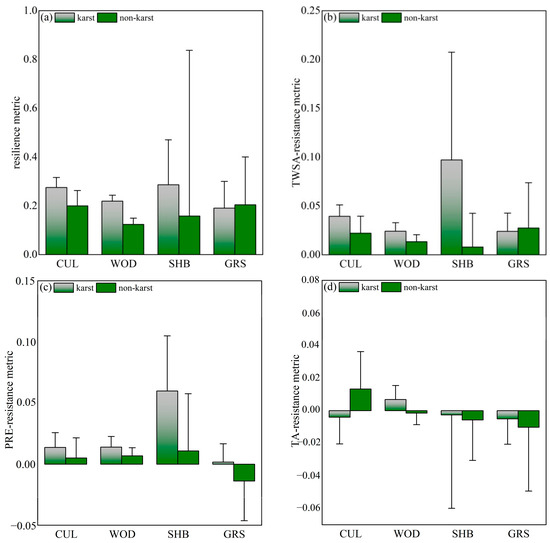 4.2. Differences in Resilience and Resistance Between Karst and Non-Karst Areas
