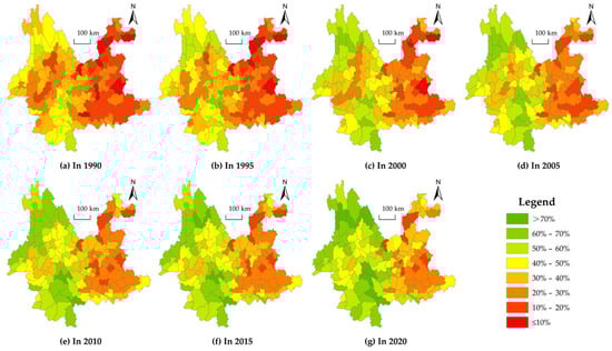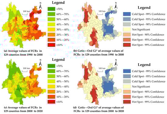 This study calculated the FCRs of 129 counties over seven periods based on RS interpretation results and GIS technology (Figure 7).