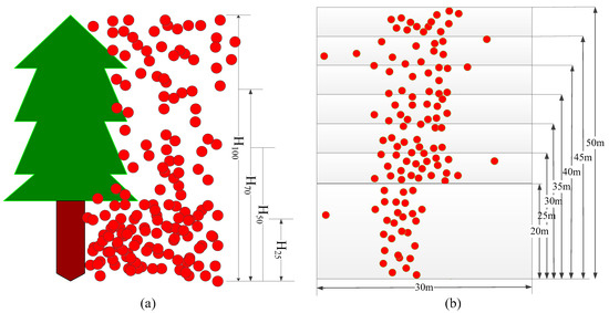 Schematic diagrams of the impact of different photon cloud parameters and windows on estimation accuracy. (a) illustrates the estimation of forest canopy height using different photon cloud characteristic parameters. (b) shows how forest canopy height is estimated using different window sizes.