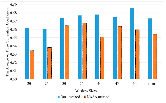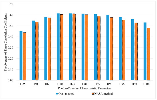 Table 3 shows the accuracy evaluation criteria for various windows using the H70 photon-counting characteristic parameter. Figure 5 shows the average correlation coefficients between two algorithms under different window size conditions.