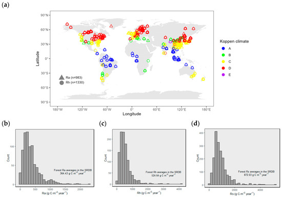 - Stell, E.; Warner, D.; Jian, J.; Bond-Lamberty, B.; Vargas, R. Spatial biases of information influence global estimates of soil respiration: How can we improve global predictions? Glob. Change Biol. 2021, 27, 3923–3938. [Google Scholar] [CrossRef]