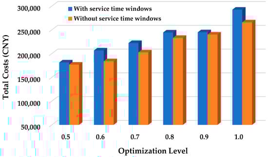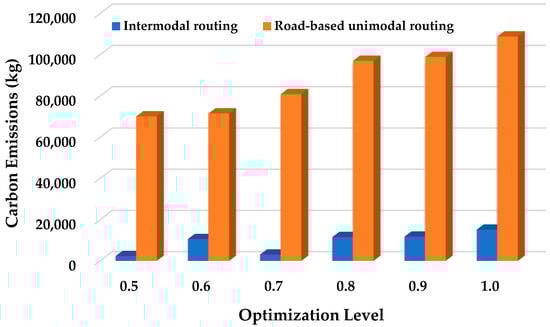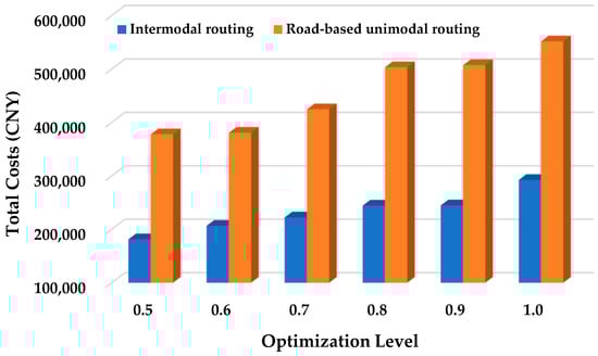 The optimization level, which indicates the attitude of the timber mill, has a significant influence on the routing optimization from the perspectives of economics, environmental sustainability, and reliability. The timber mill has to increase its budget if it prefers the high reliability of routing to avoid capacity insufficiency and budget shortage in the actual transportation. In practical decision making, the analytic hierarchy process method [
