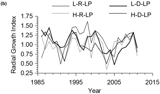 - Genries, A.; Drobyshev, I.; Bergeron, Y. Growth-climate response of jack pine on clay soils in northeastern Canada. Dendrochronologia 2012, 30, 127–136. [Google Scholar] [CrossRef]