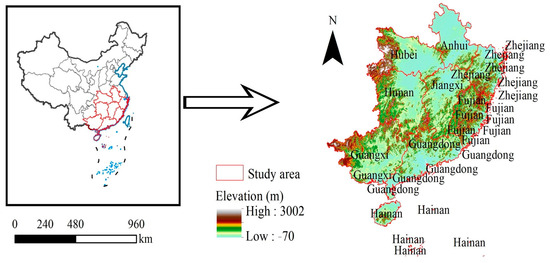 As illustrated in Figure 1, the southern forest region of China includes the provinces of Hubei, Hunan, Guangdong, Fujian, Guangxi, Jiangxi, Anhui, Zhejiang, and Hainan. Spanning approximately 1.386 million km2, this vast area is located in central and eastern China. This region is characterized by a warm and humid climate with ample rainfall, influenced by temperate and subtropical monsoon climates, providing optimal conditions for plant growth. The terrain is diverse, featuring plateaus, mountains, hills, and plains, which offer varied site conditions for forest development. The region also has a range of soil types, including red soil, yellow soil, and brick-red soil, which supply essential nutrients for forest growth. Additionally, the region benefits from an extensive water network, with numerous rivers and lakes providing adequate moisture and promoting material cycling and energy flow. Despite these favorable conditions, the southern forest region faces severe forest fire threats. Fires can have devastating impacts on the fragile ecosystem and pose significant risks to local socio-economic conditions, including potential casualties, property damage, and long-term challenges in ecological restoration.