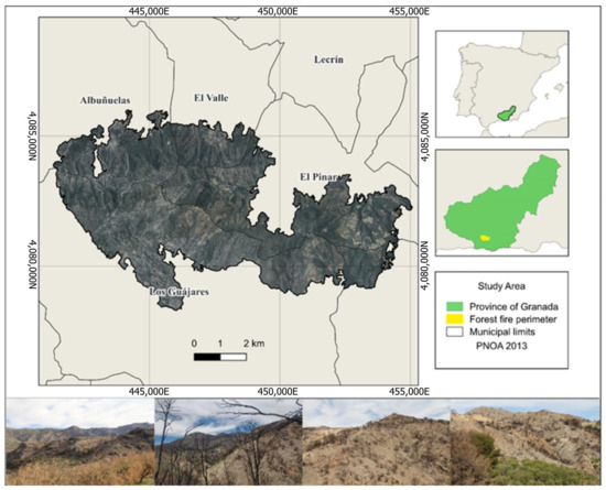 - Junta de Andalucía. Ministry of Sustainability, Environment and Blue Economy. General Directorate for Forest Policy and Biodiversity. Preliminary Report of the Fire in Los Guájares (Granada). Available online: https://www.juntadeandalucia.es/medioambiente/portal/landing-page-%C3%ADndice/-/asset_publisher/zX2ouZa4r1Rf/content/incendios-singulares/20151 (accessed on 4 June 2023).