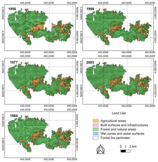 2.3. Multitemporal Analysis of Land Use Changes