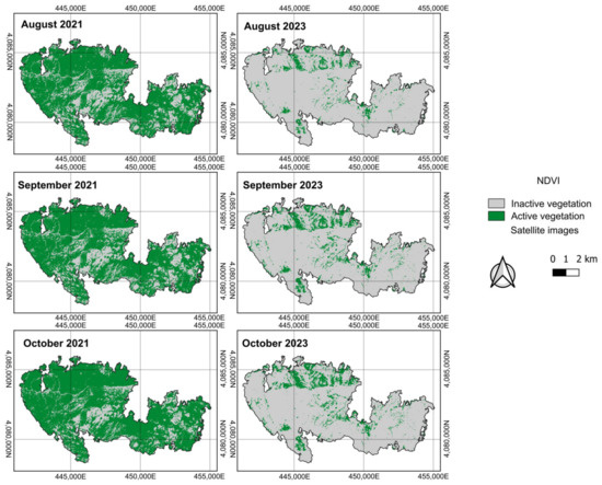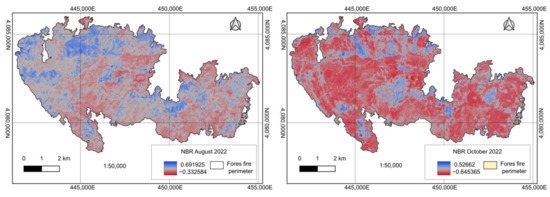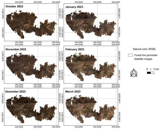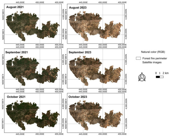 3.2. Analysis of Satellite Images Before and After the Forest Fire