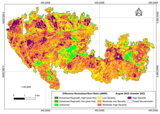 3.4. Normalized Burn Ratio (NBR) and Difference Normalized Burn Ratio (dNBR)