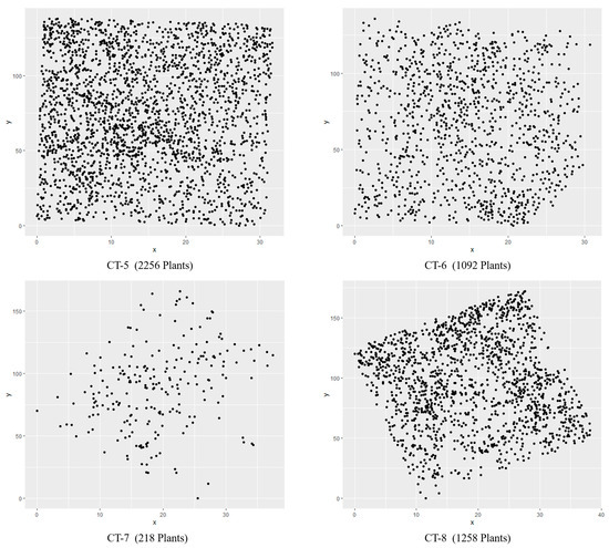 - Baddeley, A.; Turner, R. Spatstat: An R package for analyzing spatial point patterns. J. Stat. Softw. 2005, 12, 1–42. [Google Scholar] [CrossRef]