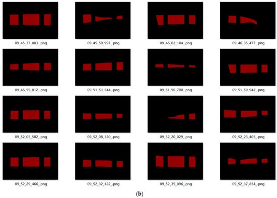 After completing the annotation process, we constructed a semantic segmentation dataset containing 4863 images of wood plate, which we named “Img_data”. Additionally, we defined a custom semantic segmentation label named “panel_veneer”, which is saved in a text file named “label.txt”. Figure 5 shows examples of images from the semantic segmentation dataset. Next, we randomly divided the dataset into training and validation sets using an 8:2 ratio. Both sets include original images and corresponding annotation information. Specifically, the training set consists of 3890 images, and the validation set consists of 973 images. These sets are used for model training and validation purposes.