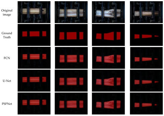 From Figure 6, it can be observed that all listed models used in the experiment accurately segmented the wood plate regions from the non-wood plate regions (bark and background). The predicted masks cover the target objects, meaning they cover most of the pixels in the wood plate regions while maintaining pixel classification consistency and continuity. Additionally, the predicted masks are quite similar to the Ground Truth with minimal differences.