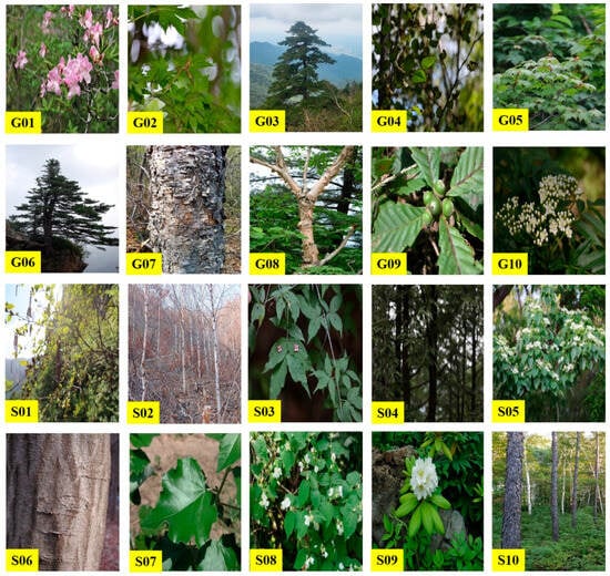 Generalist and specialist woody plants found within Abies sp. habitats were selected (Table 2, Figure 4, Appendix A). The mean horizontal and vertical distribution values were calculated, and the top 10 generalist and specialist species were designated. The generalist species included Rhododendron schlippenbachii Maxim. (G1), Acer pseudosieboldianum (Pax) Kom. (G2), Picea jezoensis (Siebold & Zucc.) Carrière (G3), Betula ermanii Cham. (G4), Acer komarovii Pojark. (G5), Pinus koraiensis Siebold & Zucc. (G6), Betula davurica Pall. (G7), Betula costata Trautv. (G8), Quercus mongolica Fisch. ex Ledeb (G9), and Sorbus commixta Hedl. (G10). The specialist species included Betula chinensis Maxim. (S1), Betula platyphylla var. japonica (Miq.) H. Hara (S2), Euonymus pauciflorus Maxim. (S3), Salix maximowiczii Kom. (S4), Cornus walteri F.T. Wangerin (S5), Carpinus laxiflora (Siebold & Zucc.) Blume (S6), Populus davidiana Dode (S7), Philadelphus tenuifolius Rupr. & Maxim. (S8), Rhododendron brachycarpum D. Don ex G.Don (S9), and Larix olgensis var. koreana (Nakai) Nakai (S10).