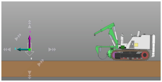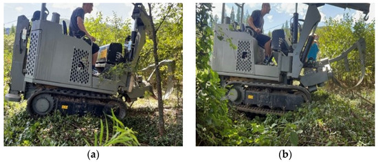 In the invention of the whole machine, the tree transplanting machines produced are well-equipped and highly efficient by companies such as Big-John in Heber Springs, AR United States, Dutchman in Pickering, ON and Holt Industrial in Waterloo, GA, Canada, with a low rate of root ball damage and a high seedling survival rate. However, due to their considerable dimensions, their tree-planting machines are more suitable for large-scale afforestation in gentle slopes and flat areas, rather than in China’s hilly and marshy regions [6,7]. The U-shaped spade tree transplanting machines invented by Holmac in Padova, MAR, Italy, exhibit compactness and working efficiency but are intricate to operate, costly to purchase and maintain, and have relatively limited functionality. In China, representative models include the 4YS-80 hanging tree transplanting machines invented by Beijing Forestry University, the 4YS-600 model invented by Li and his colleagues, and the 3WSL-1.6 model produced by Anhui Sanpu Intelligent Heavy Industry. These compact and well-configured transplanters enable efficient seedling excavation and good mobility [8,9]. All these machines use a tracked system, offering a larger ground contact area, lower ground pressure, better traction, more vital climbing ability, a smaller turning radius, and greater adaptability than a wheeled chassis [10]. However, they still face potential issues such as overturning and slipping during actual operations [11]. Therefore, to enhance the mobility performance of tree transplanting machines, it is essential to conduct comprehensive research on their driving mechanisms across diverse terrain environments and ascertain the impact of pivotal structural parameters on their mobility performance.
