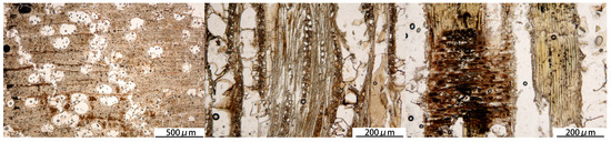 Wood is undoubtedly one of the most important materials in human history. Wooden crafts and constructions that have fortunately been preserved until the present are our valuable assets, witnessing our ancestors’ culture, history, and technology. Waterlogged archaeological wood (WAW) is one of those wooden remains that requires careful conservation actions to prevent shrinkage, cracking, and deformation during the dehydration process. Due to submerged burial environments, they have been subjected to limited microbial attacks and oxidation. Even so, deterioration of WAW varies from one sample to another, depending on the specific wood species, burial time, microbial community, and oxygen level. Under a bad scenario, bacterial decay causes significant loss of holocellulose and the formation of countless microcavities and tunnels within secondary walls [1,2]. As a result, shrinkage of WAW during dehydration could be tremendous if no measures were taken.