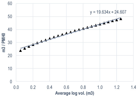 Productivity of the forwarder (m3/PMH0) as a function of the average log volume.