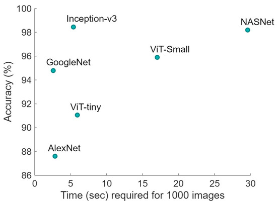 The AlexNet network is the most frequently cited foundational network. The other networks used are among the most commonly employed and differ in the number of parameters, structure, and consequently, computational and time requirements. The networks are implemented using the MATLAB 2024a software package.