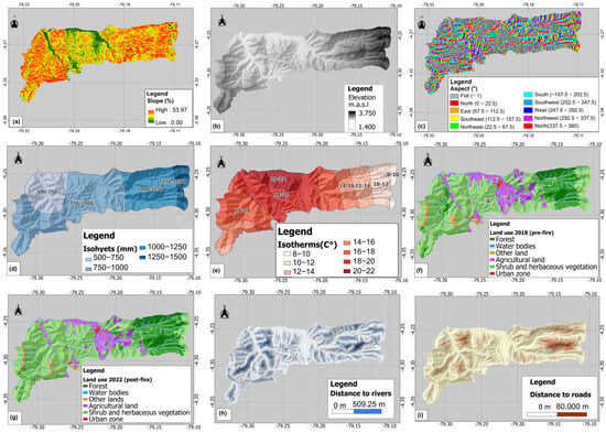 Variables for the wildfire susceptibility analysis for Vilcabamba parish.