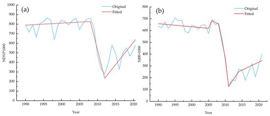 Time series fitting curve. (a) NDVI; (b) NBR.