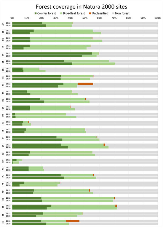 3.2. Forest Cover in 2012 and 2018 within Natura 2000 Sites at the Country Level