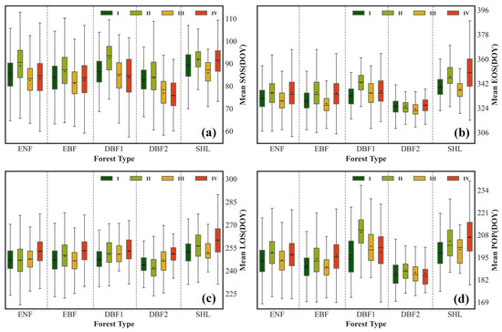 | Factor | Range of Max SOS Mean | Max SOS Mean (d) | Range of Min SOS Mean | Min SOS Mean (d) | Range of Max EOS Mean | Max EOS mean (d) | Range of Min EOS Mean | Min EOS Mean (d) |