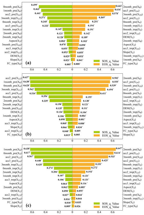 3.3. Exploration of the Driving Factors of SOS and EOS Spatial Differentiation