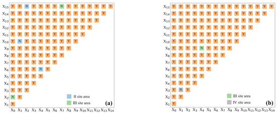 | II | X11∩X5 (0.854) ↑↑ > X12∩X5 (0.849) ↑↑ > X6∩X5 (0.831) ↑↑ > X12∩X7 (0.828) ↑ > X14∩X5 (0.819) ↑↑ | |