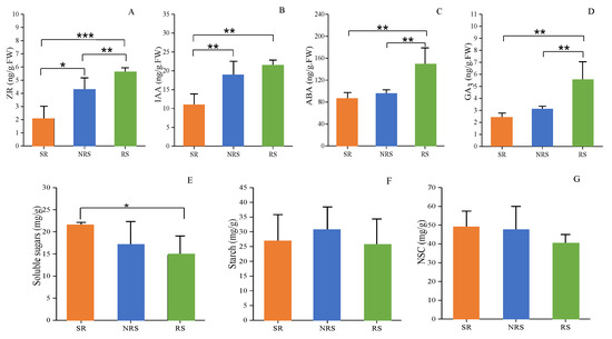 3.3. Non-Structural Carbohydrate Levels in RS, NRS and SR