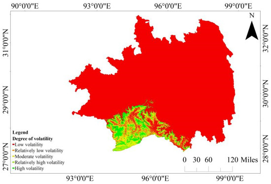 Following the classification method, the regional coefficient of variation (CV) is categorized into five levels: CV < 0.05 is considered low volatility, 0.05 ≤ CV < 0.10 is relatively low volatility, 0.10 ≤ CV < 0.15 is moderate volatility, 0.15 ≤ CV < 0.20 is relatively high volatility, and CV ≥ 0.20 is high volatility [40].