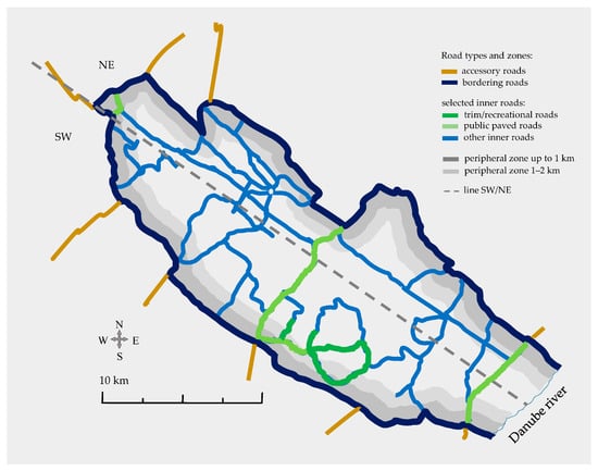 There are also unpaved roads totalling 91 km along the boundaries of the Deliblato Sands protected area. We have marked these roads as bordering roads and recorded the occurrence of A. syriaca along these roads as well. Only on the banks of the Danube are there no such roads (Figure 2).