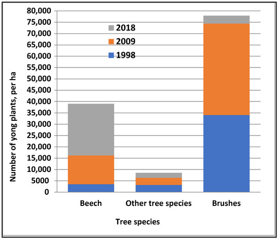 - Madsen, P.; Hahn, K. Natural regeneration in a beech-dominated forest managed by close-to-nature principles—A gap cutting based experiment. Can. J. For. Res. 2008, 38, 1716–1729. [Google Scholar] [CrossRef]