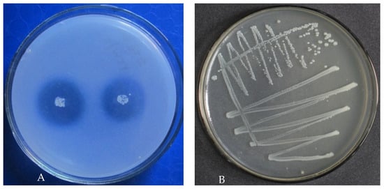 In this study, a total of 97 PSB isolates were collected from three sites containing fifteen soil samples. Among these, isolate RW37 was identified as a potent phosphate solubilizer, exhibiting the largest clear halo zone around its colony (Figure 1A). The biological characteristics of RW37 were recorded 48 h after inoculation, and the colonies were photographed (Figure 1B).