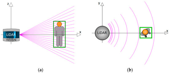 Illustration of LiDAR detection. (a) Axis ZX. (b) Axis YX.