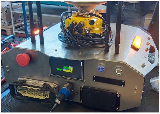 The online platform, still in development, utilizes the RabbitMQ protocol for communication. RabbitMQ, a free and open-source solution, acts as a message broker using the AMQP. It serves as an intermediary between microservices, ensuring fault tolerance and scalability. This facilitates bidirectional communication between ROS and the web. In development tests, .txt files with Cartesian coordinates were used to represent “goals” for the tractor, providing a means of communication with the PC.