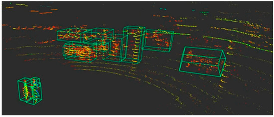LIDAR sensors play a crucial role in autonomous navigation, providing not only an accurate 3D view of the surrounding environment but also generating a point cloud that enables data manipulation for object detection. This allows the identification and measurement of these points in real time, thus creating a precise map of a constantly changing environment and enabling safe navigation. Due to their precision in distance measurement, LIDAR sensors can detect and avoid objects up to 200 m away, even in challenging weather and lighting conditions [39]. In Figure 12, we observe an illustration of how the lasers from the LIDAR propagate, with this LIDAR having 16 lasers.