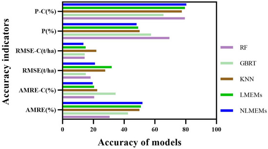 | AMRE/% | RMSE/ (t·hm−2) | AMRE/% | RMSE/ (t·hm−2) | P/% | ||