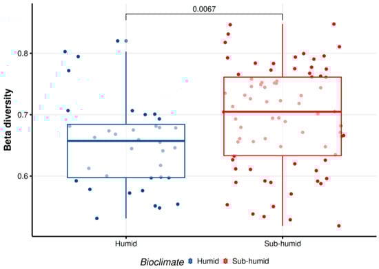 Beta diversity per bioclimate comparison with multiple pairwise comparisons.