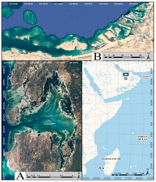 A total of 446 Sentinel-2 images were used in our study, with 69 images for Madagascar spanning from July 2015 to October 2019 and 377 images for Abu Dhabi from July 2015 to October 2020, focusing on low tidal heights (Appendix A).