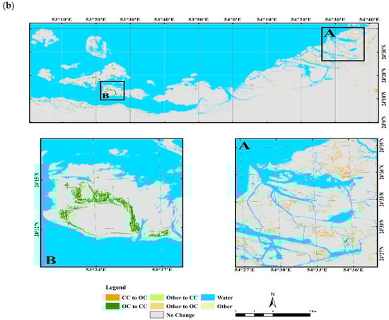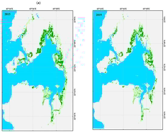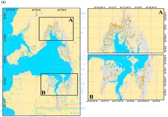 Figure 5 illustrates the spatial distribution of changes in mangrove areas in Madagascar and Abu Dhabi during the conservation implementation.
