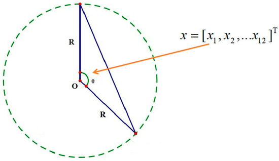 There are many optimization algorithms. Regardless of which optimization algorithm is selected, the key step is to design a reasonable fitness function and optimization conditions [42,43]. The optimization algorithm itself is not studied in this paper; therefore, the classical Genetic Algorithm is selected as the optimization method. In the Genetic Algorithm, there are multiple steps involved, including initializing the population; encoding; and calculating fitness, selection, crossover, and mutation. Considering that the cross-section of the trunks is usually circular, in order to effectively model the distribution status of a set of sensors, as shown in Figure 5, we use the angle to represent the spacing between sensors. Genetic individuals can be represented as follows: