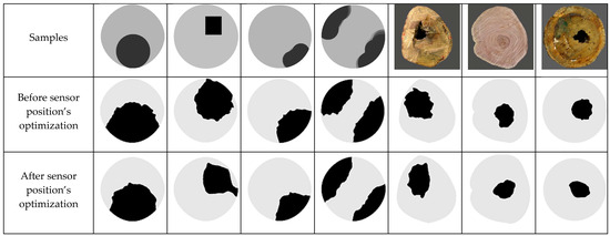 Comparison of reconstructed defective areas before and after sensor position’s optimization.