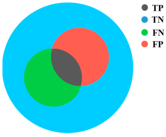 As shown in Figure 13, TP represents the region that is correctly estimated as internal wood defects. FN represents the region that is incorrectly estimated as sound wood. FP represents the region that is incorrectly estimated as internal wood defects. TN represents the region that is correctly estimated as sound wood. Therefore, the confusion matrix can indicate the overlap degree of two shapes. Quantitative indicators such as accuracy, precision, and recall are calculated as follows:
