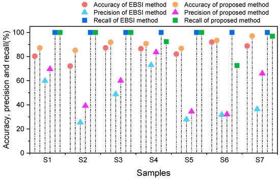 Comparison of accuracy, precision, and recall.