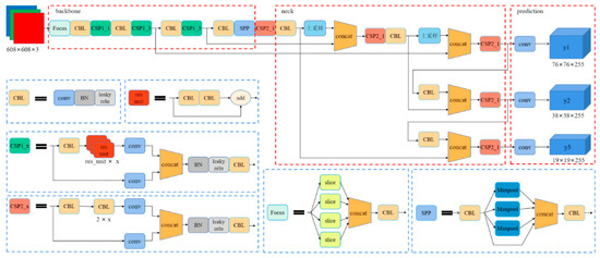 In Figure 1, the YOLOv5 network structure mainly consists of four parts: input, backbone, neck, and output, and each part is composed of different essential components to accomplish its various functions.