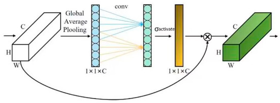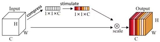 Among them, the SE attention mechanism helps solve the loss problem caused by the different importance of different channels in the feature graph during convolution pooling. Based on the original learning mechanism, it opens up a new network path, obtains the attention degree of each channel in the feature graph through operation, and assigns an attention weight to each feature channel according to the degree so that the convolutional network pays more attention to these feature channels, and then secures the channel of the feature graph that is useful for the current task and suppresses feature channels that are not useful. Its structure is shown in Figure 2.