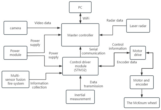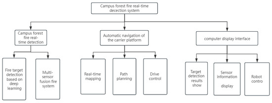 The overall design of this system comprises three components: forest fire detection module, carrier platform automatic navigation module, and upper computer display and control module [14], as shown in Figure 14.
