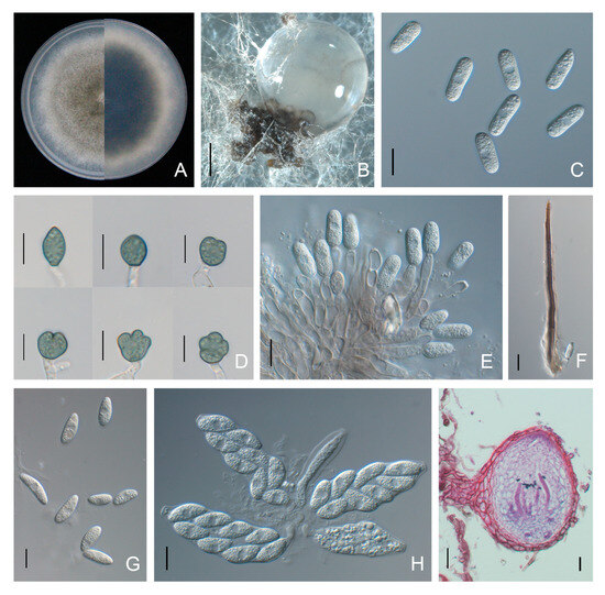 - Hyde, K.D.; Nilsson, R.H.; Alias, S.A.; Ariyawansa, H.A.; Blair, J.E.; Cai, L.; Cock, A.W.A.M.; Dissanayake, A.J.; Glockling, S.L.; Goonasekara, I.D.; et al. One stop shop: Backbones trees for important phytopathogenic genera: I. Fungal Divers. 2014, 67, 21–125. [Google Scholar] [CrossRef]